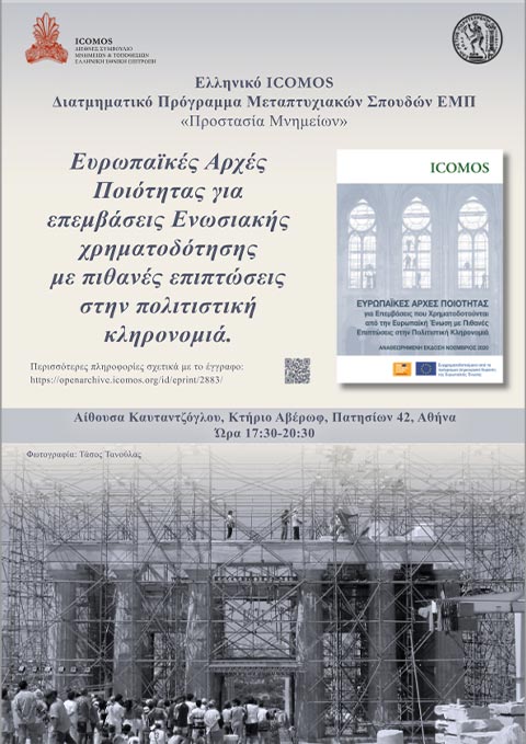 Το Ελληνικό ICOMOS από την ίδρυση του έχει αναπτύξει επιστημονική δραστηριότητα, που αφορά στην προώθηση και ενίσχυση των κατάλληλων μέτρων για την προστασία και ανάδειξη των Μνημείων και Τοποθεσιών.